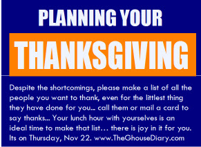 Despite the shortcomings, please make a list of all the people you want to thank, even for the littlest thing they have done for you… say thanks, call them or mail them a card. It is very uplifting thing to do.